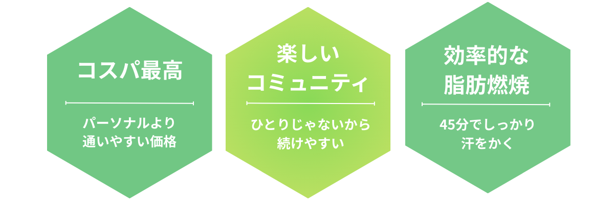 45分で効率的に脂肪燃焼。通いやすい価格とコミュニティで、運動習慣を続けられる環境をつくります。