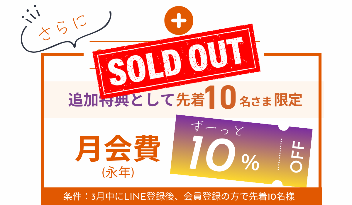 ※さらに先着10名様は月会費が永年10%OFF